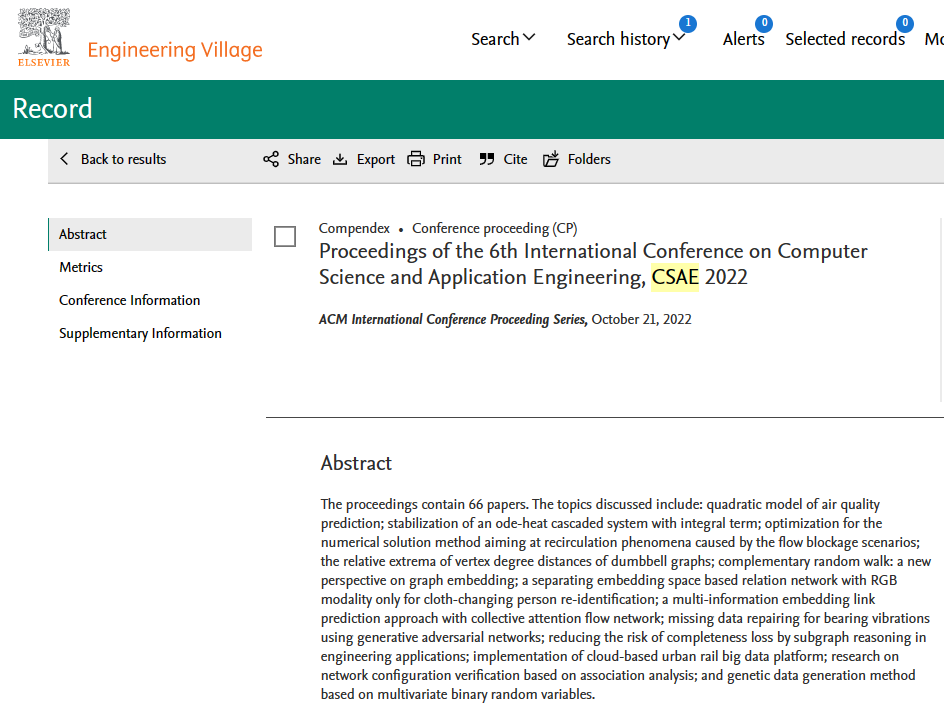 The proceedings of CSAE2022 were published by ACM International Conference Proceedings Series on December 13, included in ACM digital library, and indexed by EI and Scopus successfully.